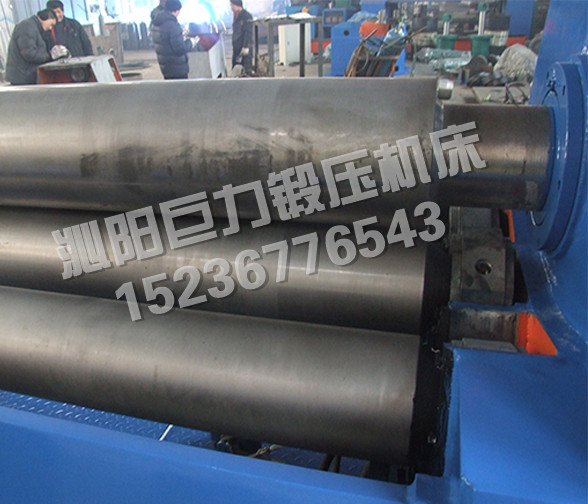 該四輥卷板機(jī)與對(duì)稱(chēng)三輥卷板機(jī)比較,它可以不借助其它設(shè)備模具,直接予彎板材端部,而且剩余直邊較?。凰梢圆皇拱宀恼{(diào)頭,而卷成工件。
